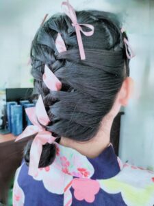 先日の夏まつりで浴衣とヘアをさせて頂きました🌻✨小学生さまですが、大人っぽく素敵でした😍